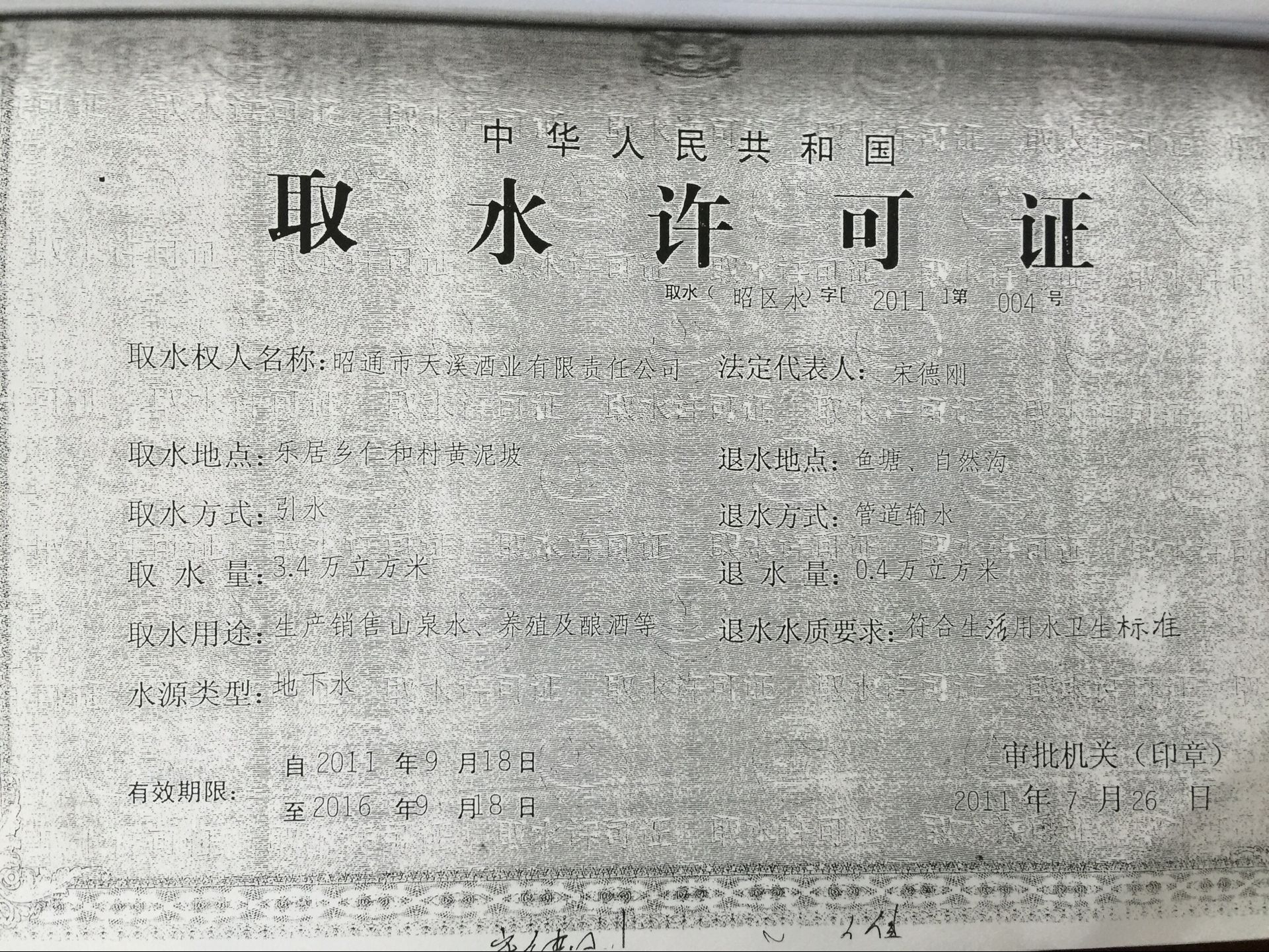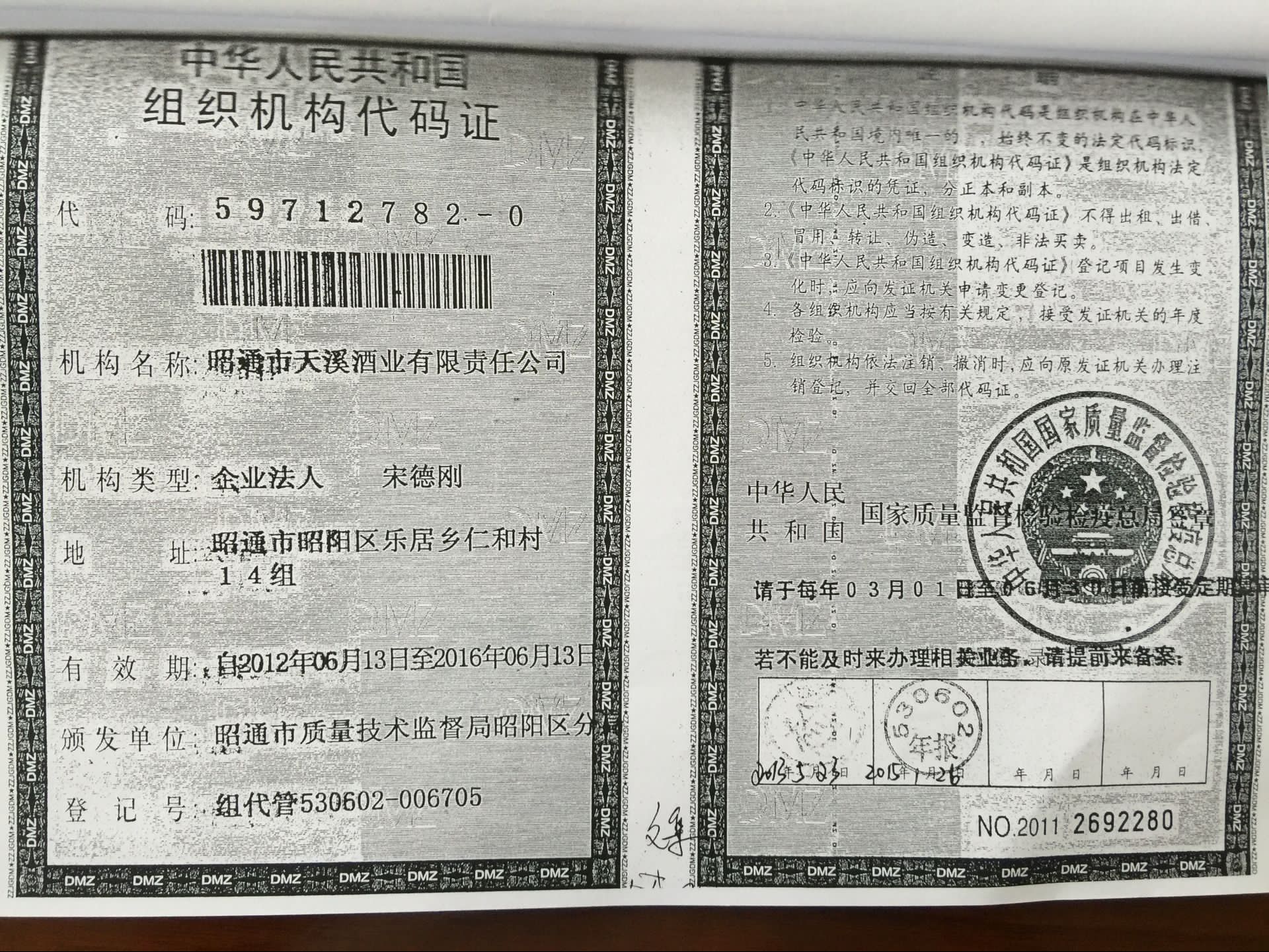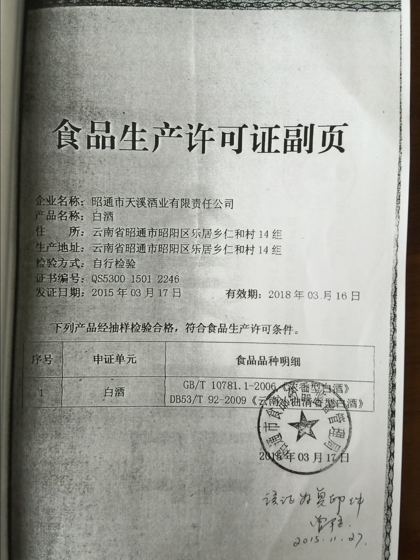 昭通市天溪酒業(yè)有限公司資質(zhì)證照復(fù)印件