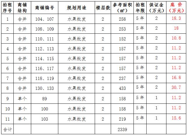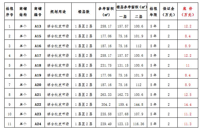 (三)拍租位于鎮(zhèn)雄縣舊府街道魯家院子安置點(diǎn)11間商鋪使用權(quán)。以間為單位拍租。詳見(jiàn)下表: