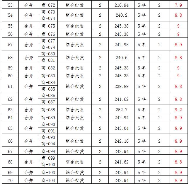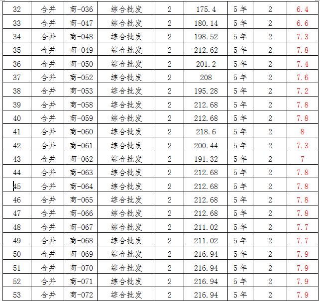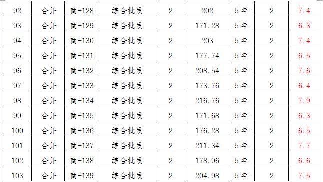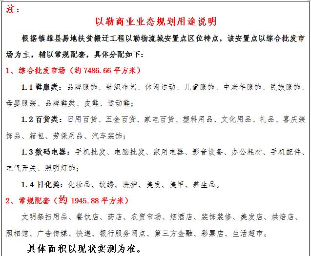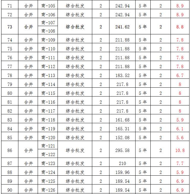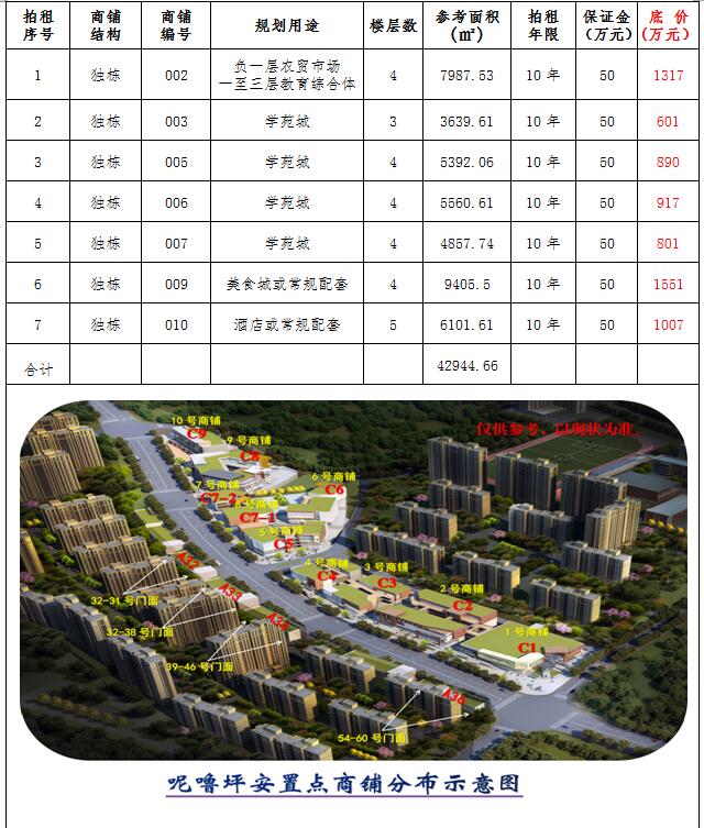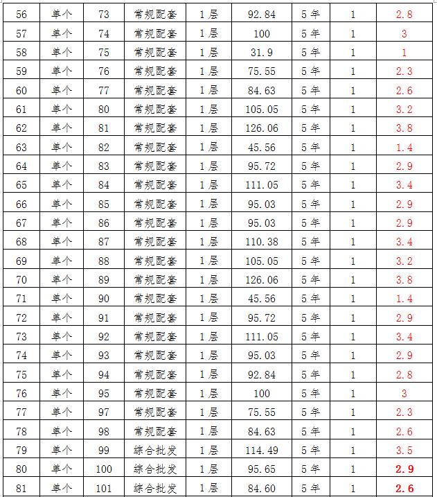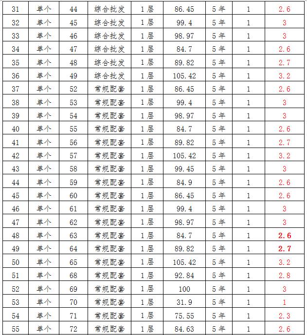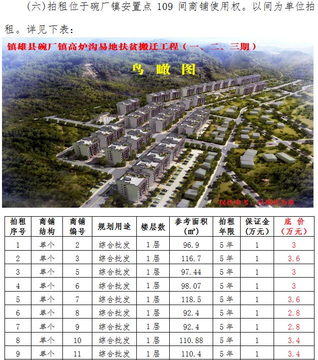 (四)拍租位于鎮(zhèn)雄縣母享鎮(zhèn)安置點(diǎn)132間商鋪使用權(quán)。以間為單位拍租。詳見(jiàn)下表: