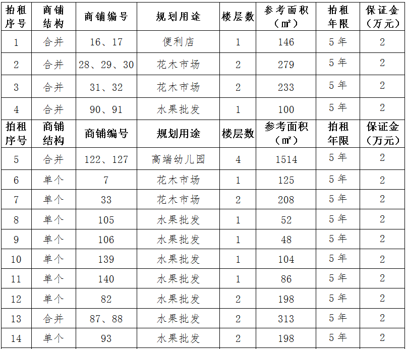 (三)拍租位于鎮(zhèn)雄縣舊府街道魯家院子安置點(diǎn)24間商鋪使用權(quán)。以間為單位拍租。詳見(jiàn)下表:
