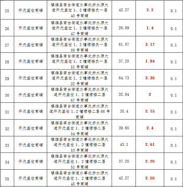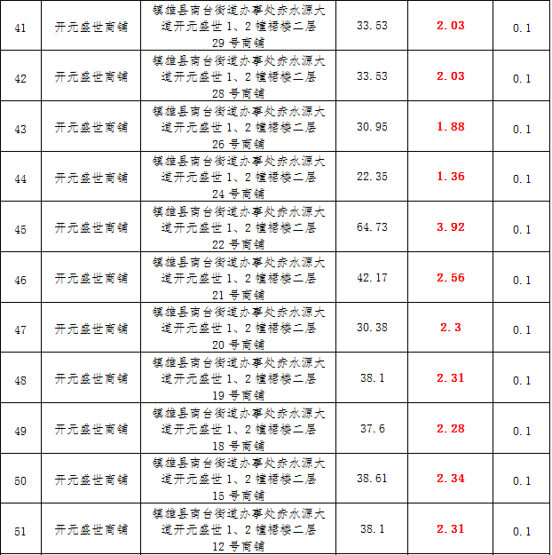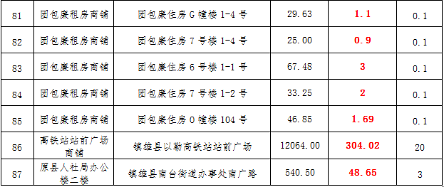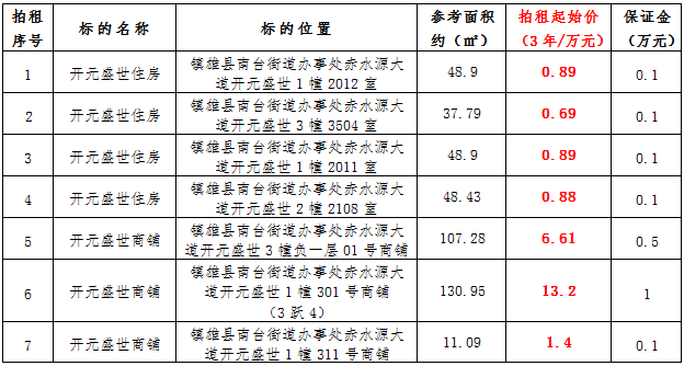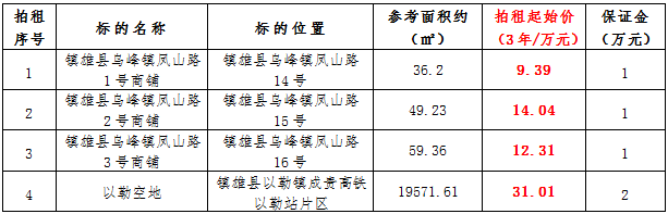 (一)拍租鎮(zhèn)雄發(fā)展集團有限公司國有門面3年期使用權,詳見下表: