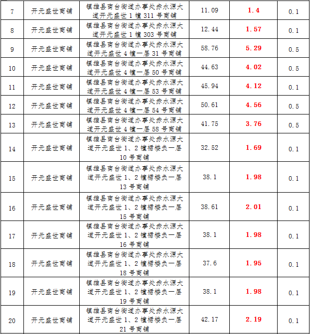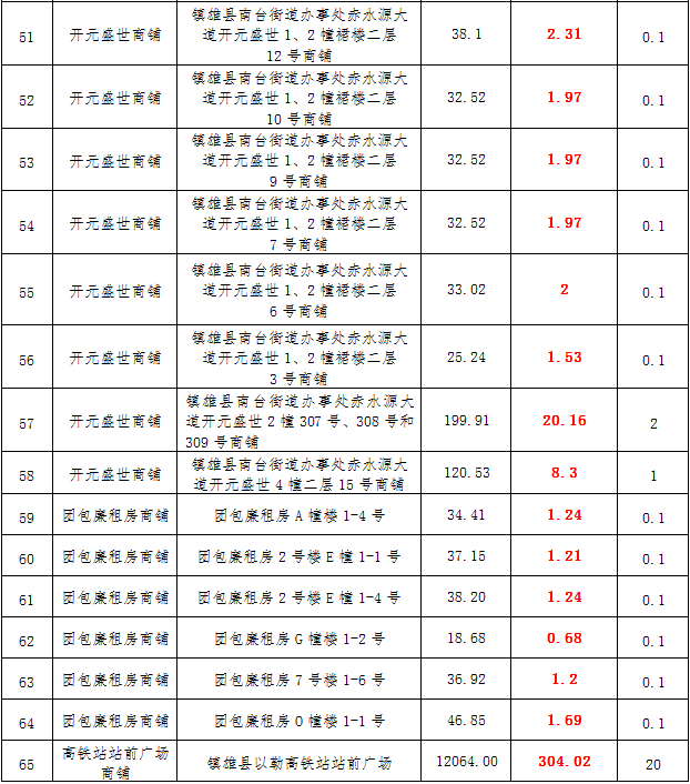 (一)拍租鎮(zhèn)雄發(fā)展集團(tuán)有限公司國有門面3年期使用權(quán),詳見下表: